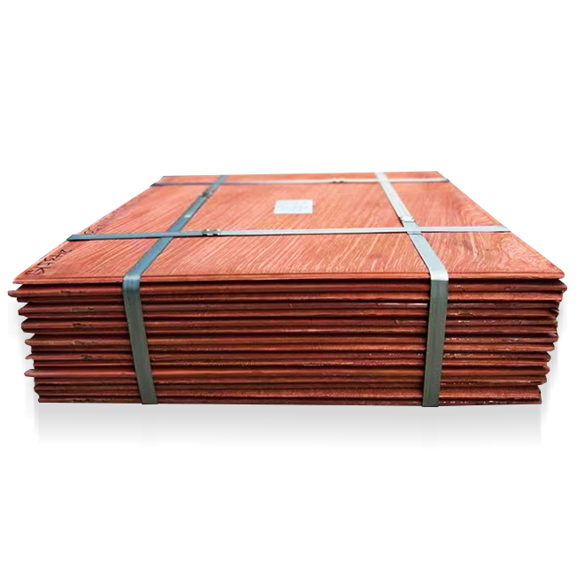 阴极铜为玫瑰红色金属,柔软,有金属光泽,富裕延展性,易弯曲、强度较好,有良好的导电性和导热性,铜及其化合物无磁性。阴极铜主要在电子、电器、造船、建筑、汽车工业、国防工业及各种冷凝剂等方面有特定的用途。 每片重量146±5kg ,尺寸为103×105cm,平滑、整齐、美观。阴极铜产品采用永久不锈钢阴极电解技术。