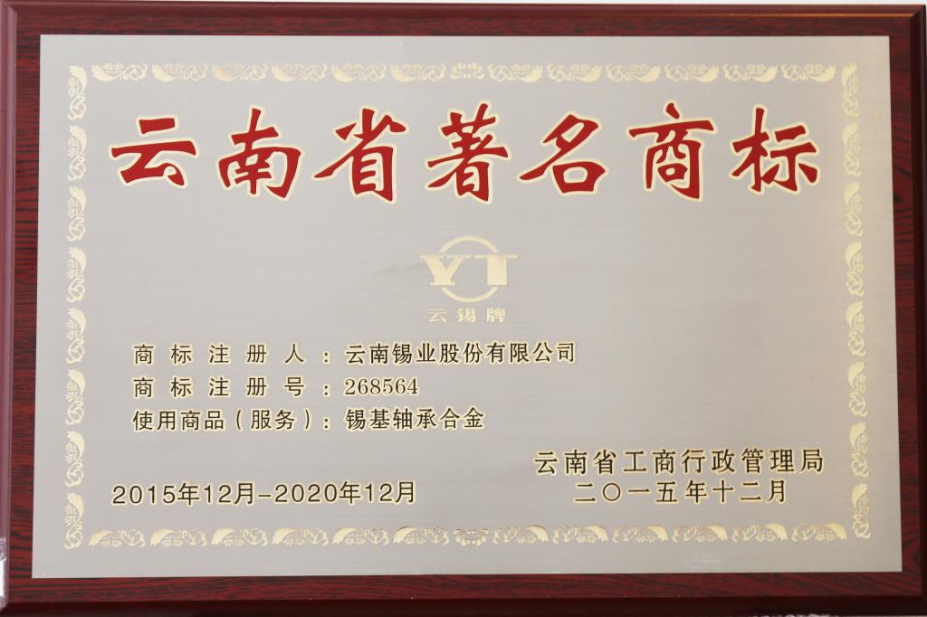 云锡牌锡基轴承合金为云南省著名商标