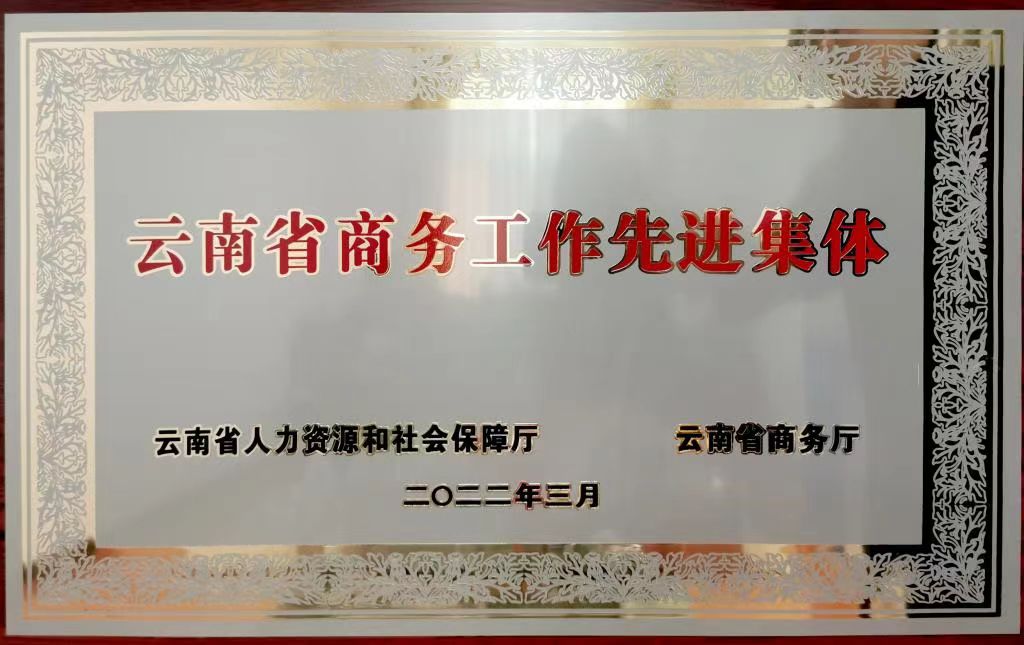 2022年,sunbet申搏荣获“云南省商务工作先进集体”荣誉称号