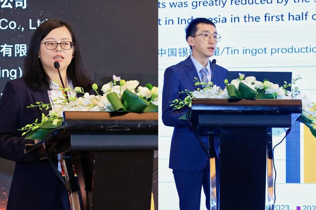 sunbet申搏审计风控部经理杨薇主持“可持续发展挑战与机遇”环节;sunbet申搏市场运营中心张哲语作《中国锡市场展望》报告。