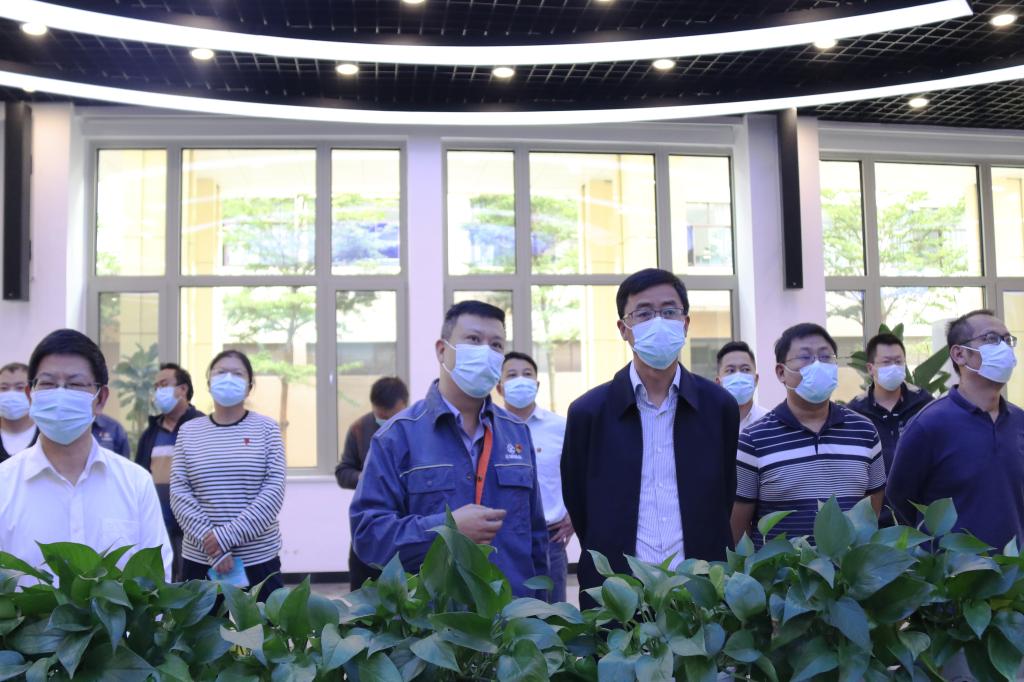 在锡冶炼智慧管控中心,调研组观看了锡冶炼企业宣传片,观摩了锡冶炼数字孪生、三维可视化三位一体系统应用演示。并围绕世界“五个之最”详细了解锡冶炼产能规模、技术装备、节能环保、数字化建设、综合效益的相关情况。