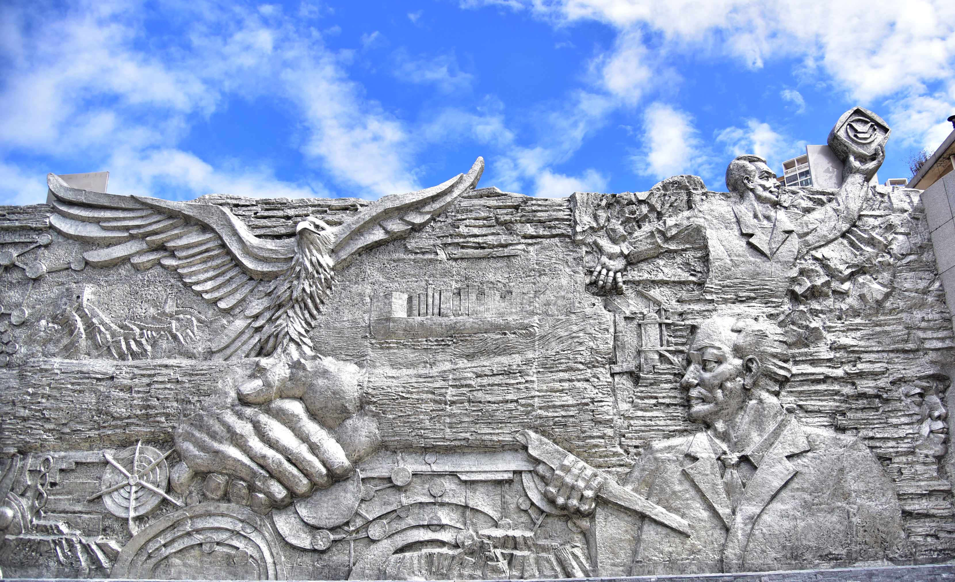在设计方、施工方和云锡参建单位与制作人员的共同努力下,2021年10月,总长80米、平均高度5.4米的大型锡业文化主题群雕在个旧金湖东路云锡办公大楼门口落成。