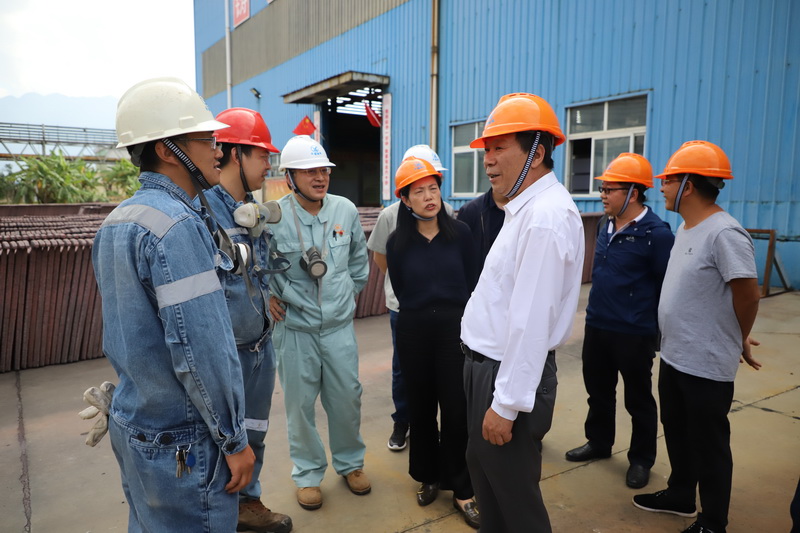 走进热火朝天干生产的精炼车间,张涛对当班员工舍小家为大家的无私奉献给予了充分的肯定。在详细询问了浇铸过程中锡液的温度、锡锭揩面是否会有飞溅等情况后,张涛叮嘱大家一定要严格遵守岗位安全操作规程,严格遵守劳动纪律,做好个人安全防护,确保节日期间安全生产平稳运行。