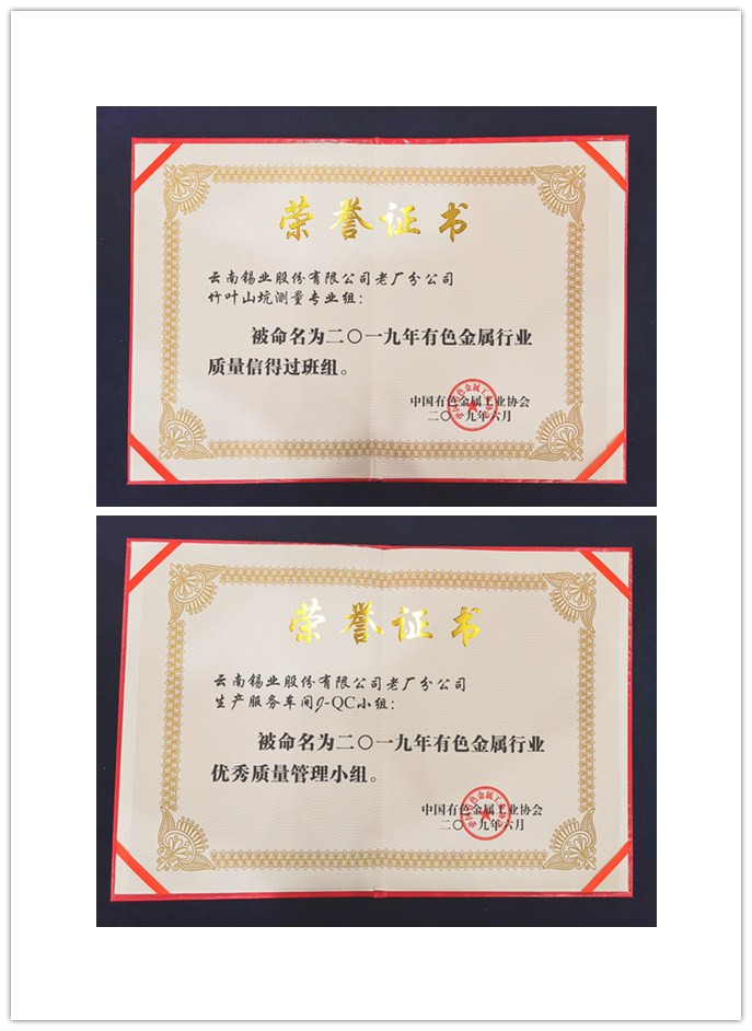 老厂分公司生产服务车间QC成果《提高金属锚网机的加工量》和竹叶山坑《测量专业组》质量信得过班组,经过逐层推荐参加了在贵州省贵阳市召开全国有色行业质量成果经验交流。经过激烈的角逐,最终在本次经验交流大会上,生产服务车间QC成果《提高金属锚网机的加工量》荣获《二〇一九年有色金属行业优秀质量管理小组》荣誉称号,竹叶山坑测量专业组荣获《二〇一九年有色金属行业质量信得过班组》荣誉称号。