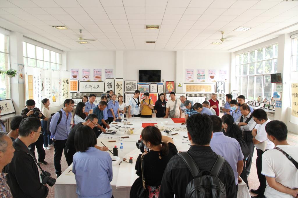 交流会上,艺术家们还对云锡职工在此次活动前征集的部分文学、书画、摄影作品进行点评。文艺爱好者们与大师们近距离地学习与交流,大师们主动传艺,为培养云锡的艺术人才,活跃文化生活提供了强大的力量。活动在参观书画作品展览,书画家现场挥毫泼墨进行书画创作中达到高潮。老艺术家在活动现场即兴挥毫泼墨、笔走龙蛇,刚劲有力的书法,让人领略到了艺术的魅力,为云锡写下蕴义深远的《云锡可敬 矿工可亲》《云在锡上 金易成锡》《锡映千秋千秋禧 百年矿业矿业兴》等作品。