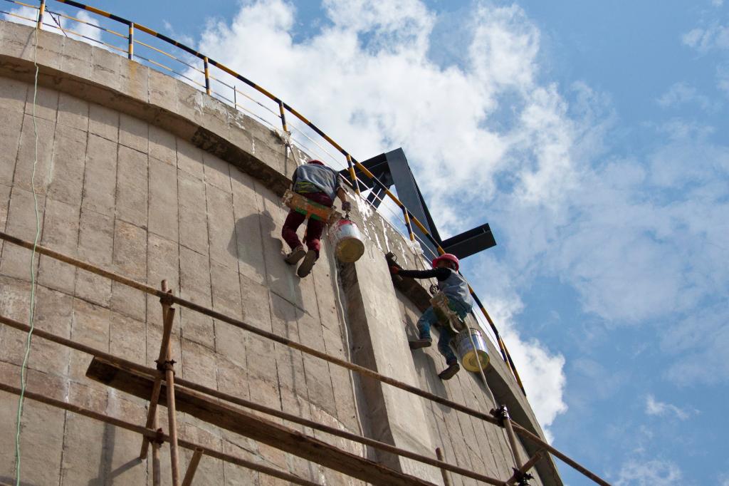 “要说浓密机的安装难不难,首先整个浓密机所有构件总重量达56吨多,都要由17米的高空由上往下放,再由下往上装。再说一说我们所使用的调装设备和工具,就知道难不难了:手动葫芦,一吨、两吨、五吨、十吨不等的十八个;千斤顶,五吨、十吨、十六吨不等的六个;交流电焊机、直流电焊机、焊条烘干箱、保温筒、砂轮机、水准仪、精密经纬仪、角磨机、铁水平尺、百分表(带磁力表座)、配电盘、漏电保护箱等等,我都不知道用了多少台套了。”几名现场施工工程技术人员一边数着手指,一边如数家珍般说道。