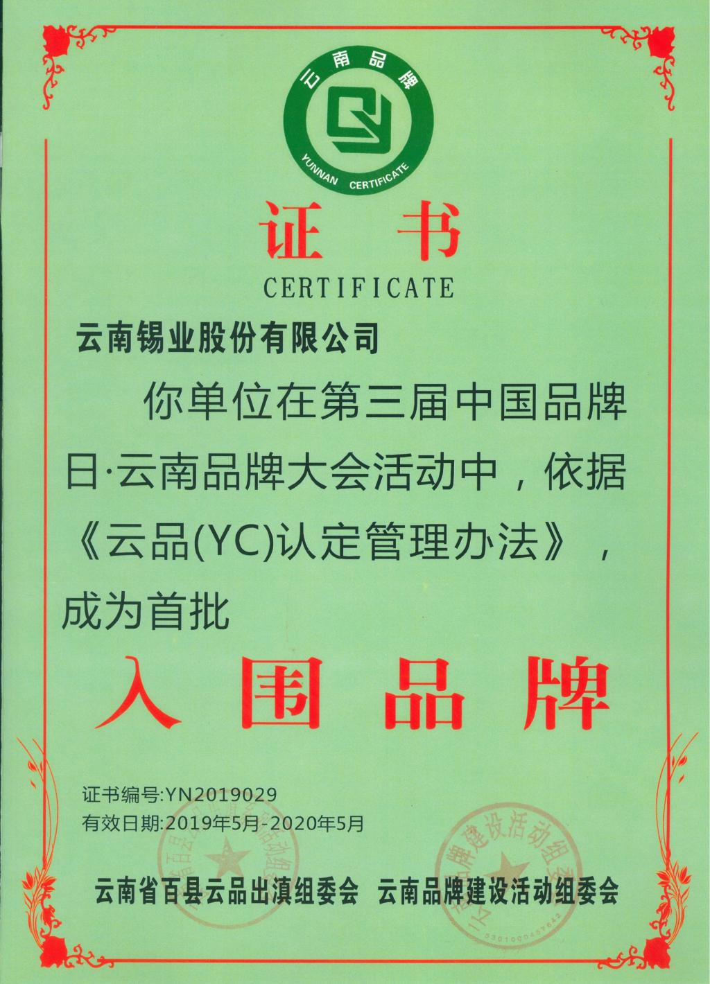 sunbet申搏入围云南首批YC品牌企业