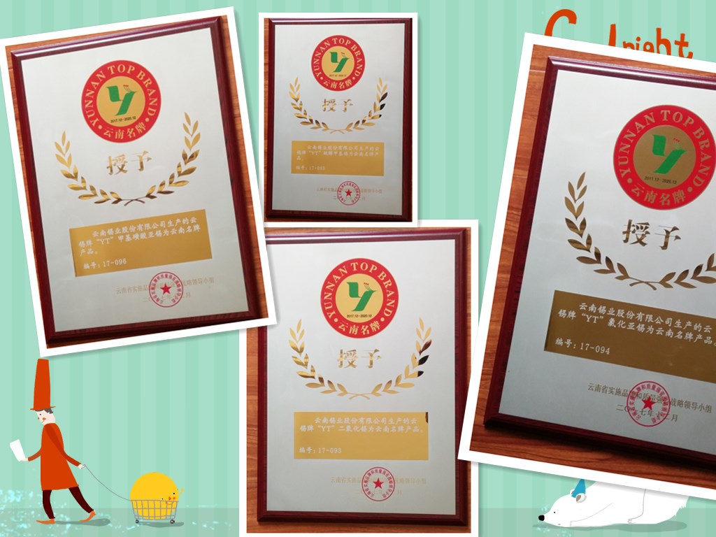 2017年,sunbet申搏品牌建设工作持续取得成效,新申报的甲基磺酸亚锡产品通过云南省名牌战略推进委员会审核,被评为云南名牌产品,氯...