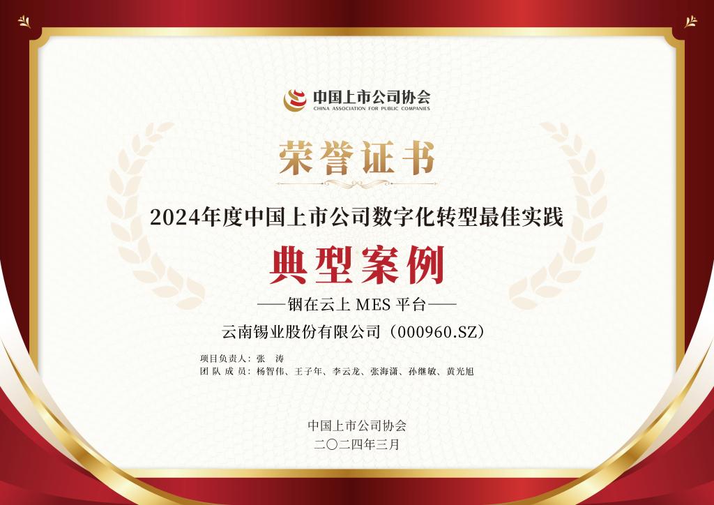 华联锌铟荣获“第三届2024年度中国上市公司数字化转型”最佳实践典型案例