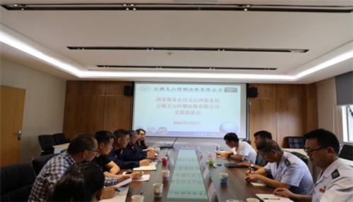 5月27日,文山州税务局党委书记、局长马学伟一行五人到文山锌铟公司调研指导工作,文山锌铟公司总经理朱北平、常务副总经理张成俊及相关部室负责人参加调研座谈会。