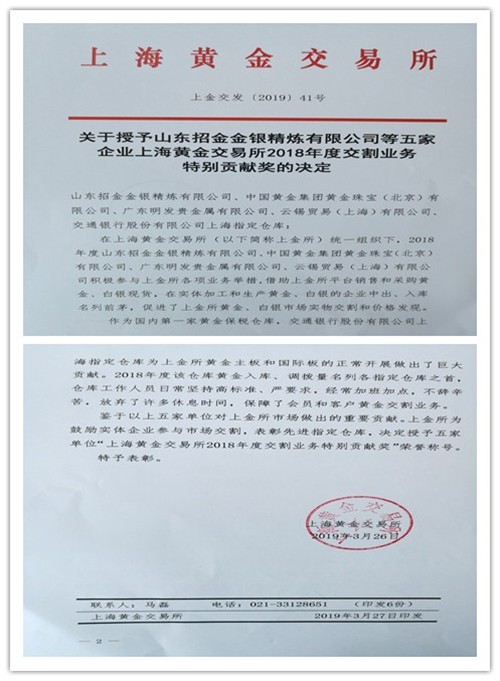 近日,云锡贸易(上海)有限公司荣获上海黄金交易所授予的“上海黄金交易所2018年度交割业务特别贡献奖”。据悉,上海金交所是国内第一家黄金保税仓库,此次“特别贡献奖”是上金所为鼓励实体加工和生产黄金、白银企业积极参与实体交割等业务,对平台采购、销售业务名列前茅的单位给予的表彰。作为此次获奖的五家单位之一,云锡贸易上海公司将再接再历,继续坚持做大做强贵金属贸易业务,完善产业链一体化平台,提升竞争力和盈...